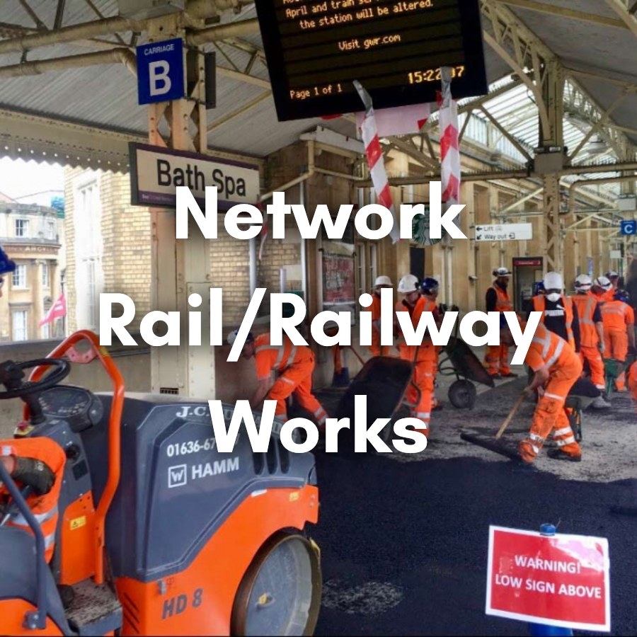 - Public sector works including school grounds, industrial estates, railway paths, farm access routes, and golf course paths